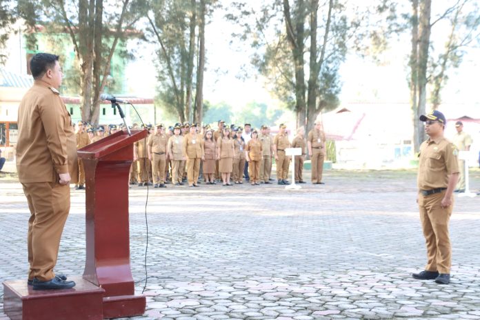 Apel diikuti Sekdakab Samosir Marudut Tua Sitinjak, para SAB, para Asisten, Kadis Kominfo dan pimpinan OPD serta seluruh jajaran staf dilingkungan Pemkab Samosir.
