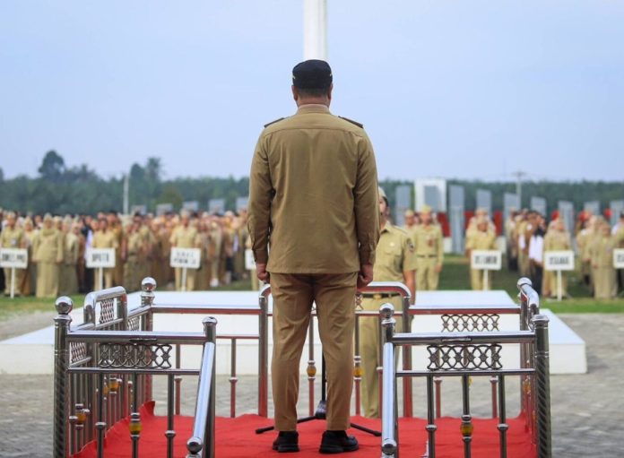 Wakil Bupati Kabupaten Baru Bara Syafrizal, SE memimpin Apel Gabungan Aparatur Sipil Negara (ASN) dan Pegawai Pemerintahan dengan Perjanjian Kerja (PPPK) di halaman Kantor Bupati Batu Bara. (
