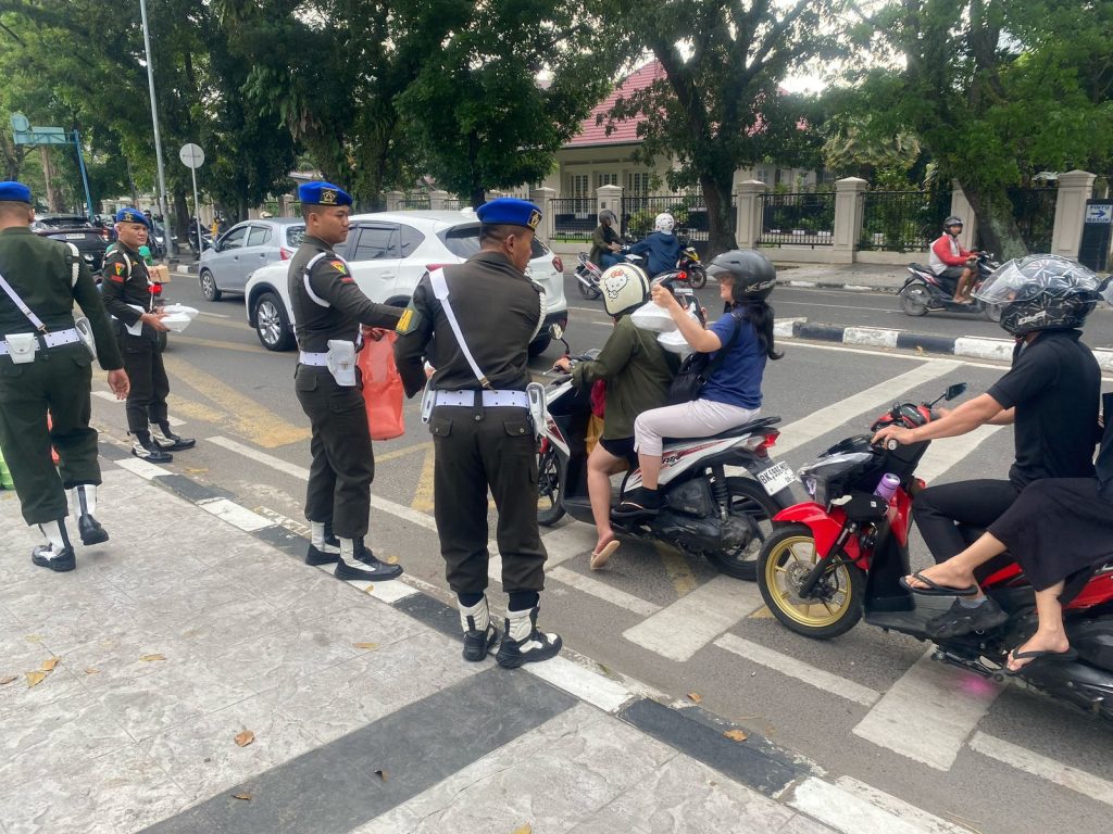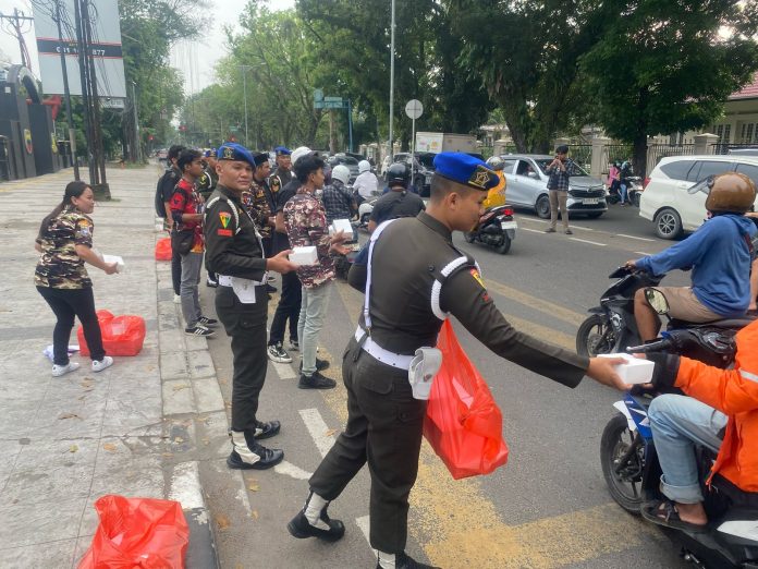 Seusai menggelar briefing, personel Denpom 1/5 Medan dibantu beberapa kader dari FKPPI mulai membagikan puluhan paket takjil untuk berbuka puasa bagi warga dan pengendara yang melintas.