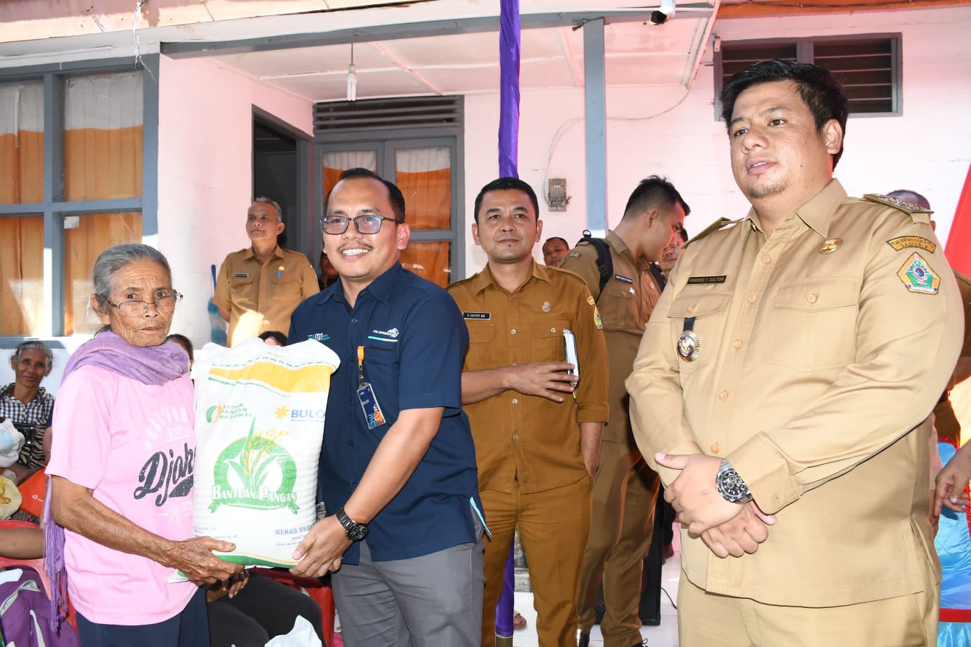 “Kami pastikan beras yang kami salurkan adalah yang berkualitas baik. Apabila bapak/ibu mendapat bantuan yang tidak baik atau kemasannya rusak, segera kembalikan dan akan kami ganti”, katanya.