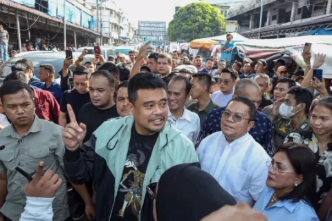 Bobby juga menyapa para pedagang yang ada di kawasan Pasar Horas. Banyak yang mengungkapkan keinginannya agar gedung yang terbakar dapat segera dibangun.