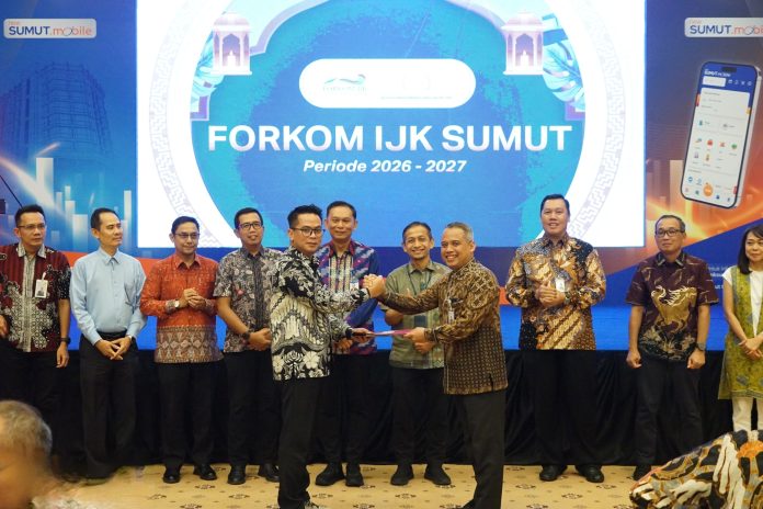 MEDAN (Media24jam.com) – Direktur Utama PT Bank Sumut (Perseroda), Heru Mardiansyah, dipercaya menjabat Ketua Umum Forum Komunikasi Industri Jasa Keuangan (Forkom IJK) Sumatera Utara periode 2026–2027. Penetapan dilakukan melalui serah terima kepengurusan dalam kegiatan Halal Bihalal Forkom IJK Sumut bersama Badan Musyawarah Perbankan Daerah (BMPD) Sumut, Rabu (15/4).