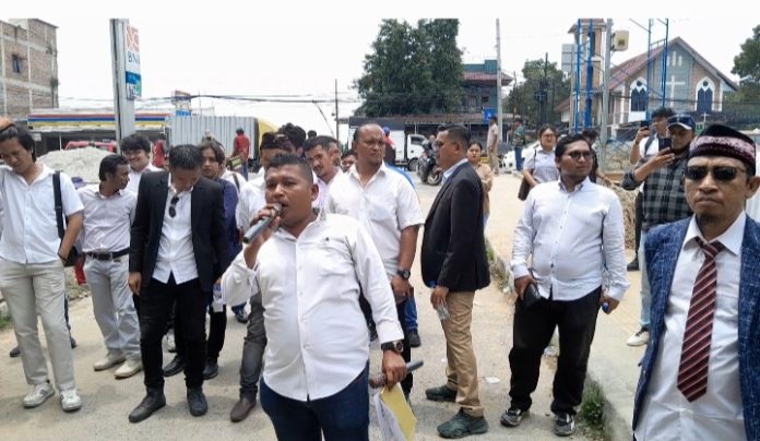Dengan mengenakan kemeja putih, para pengacara ini datang secara berkelompok dan menyuarakan tuntutan mereka secara lantang di halaman Polda Sumut. Situasi sempat memanas sebelum akhirnya pihak kepolisian turun tangan menemui massa.