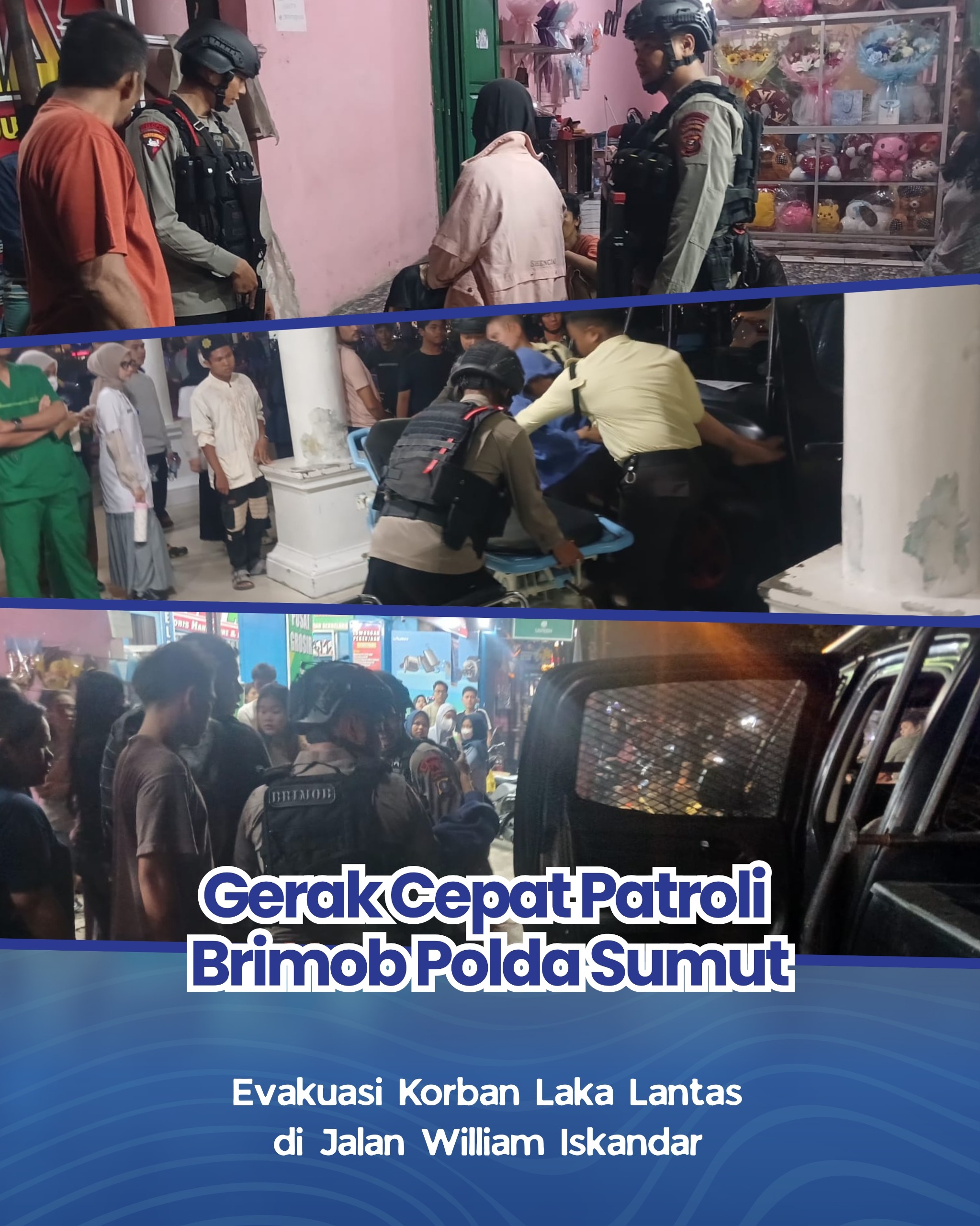 Gerak Cepat Patroli Brimob Polda Sumut Evakuasi Korban Laka Lantas di Jalan William Iskandar