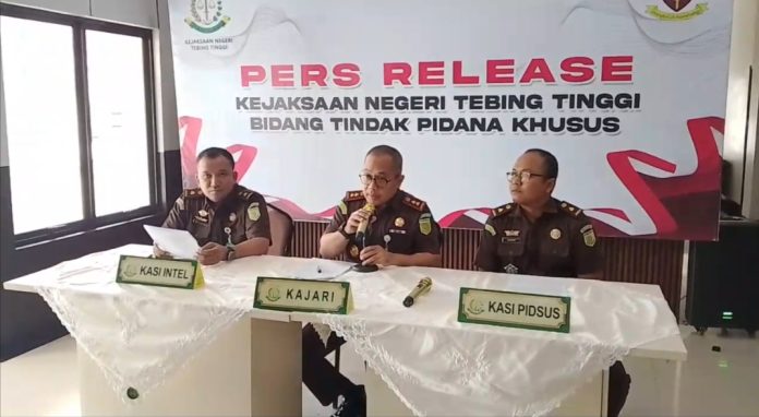 Kepala Kejaksaan Negeri Tebing Tinggi Anthony Nainggolan, di dampingi oleh Kasi Intel (Kastel) Sai Sintong Purba serta Kasi Pidsus Danang Dermahan menetapkan tersangka berdasarkan Surat Penetapan Tersangka Nomor TAP-01/L.2.16/Fd.2/04/2026.