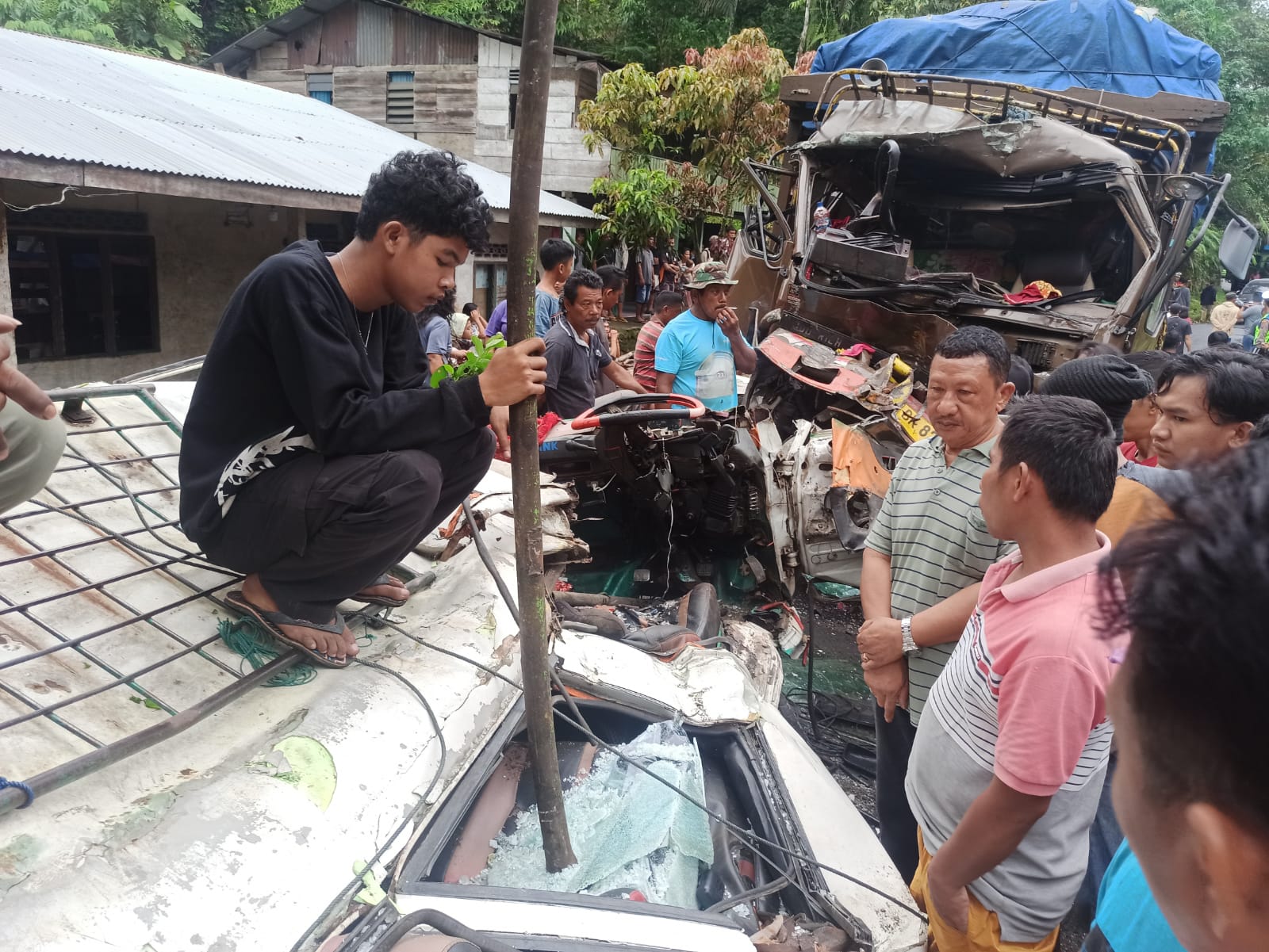 Tak pelak, truk BK 8228 EE kemudian menimpah mobil minibus L300 hingga sopirnya bernama Suardi Situmeang terhimpit dan tewas di lokasi kejadian.