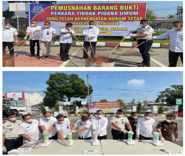 BINJAI (Media24jam.com) – Kejaksaan Negeri (Kejari) Binjai melaksanakan pemusnahan barang bukti perkara yang telah berkekuatan hukum tetap (inkracht) di halaman kantor Kejari Binjai, Jalan Tengku Amir Hamzah No. 378, Kelurahan Jati Makmur, Kecamatan Binjai Utara, Rabu (22/04/2026).