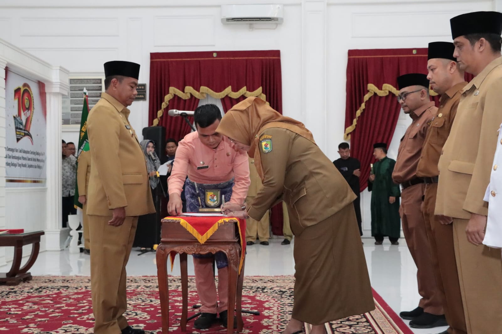Bupati menyampaikan selamat kepada semua pejabat yang hari ini dilantik. Ia kemudian menyebut, saat ini tugas besar dan tanggung jawab harus diemban para pejabat yang dilantik dan untuk itu diperlukan semangat dan rasa tanggung jawab yang tinggi, serta komitmen untuk memberikan pelayanan yang terbaik kepada masyarakat.