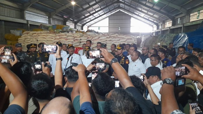 Dalam kunjungan kerja tersebut, Menteri Pertanian meninjau langsung hasil tangkapan Bea dan Cukai beberapa waktu yang lalu berupa beras sebanyak 1000 ton.