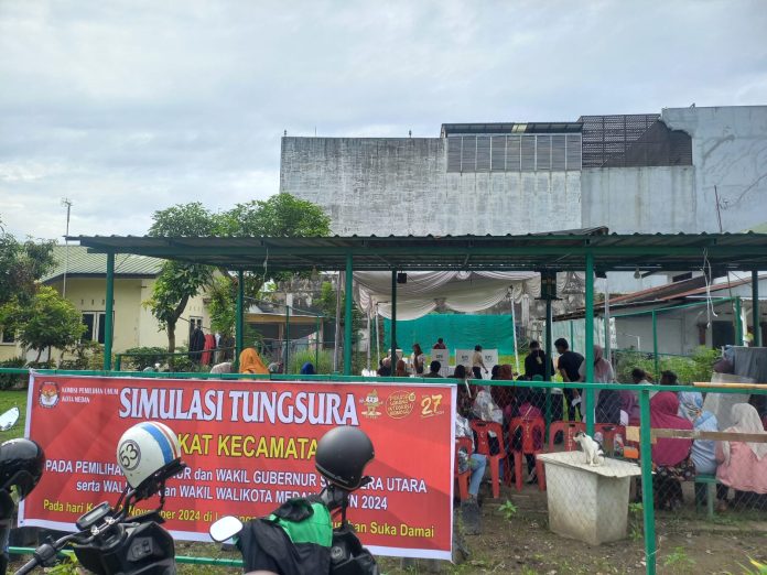 Medan – Panitia Pemilihan Kecamatan (PPK) di sejumlah kecamatan di Kota Medan melaksanakan simulasi pemungutan suara di Tempat Pemungutan Suara (TPS). Simulasi dilaksanakan sebagai pemantapan persiapan pelaksanaan pemungutan suara Pilkada serentak Rabu, 27 November mendatang.