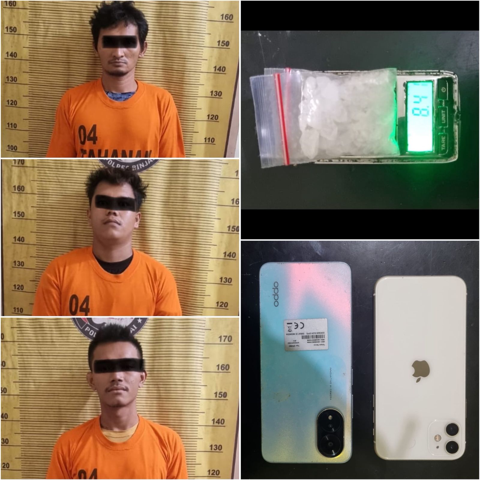 Hasil penggeledahan mematahkan tipu daya mereka. Dari bungkus rokok tersebut, petugas menemukan dua plastik klip sabu seberat bruto 8,41 gram. Selain itu, turut disita satu unit ponsel Oppo biru dan iPhone putih sebagai barang bukti.
