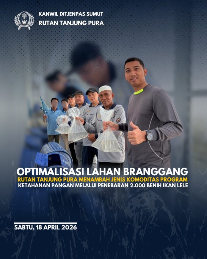 TANJUNG PURA, Media24jam — Rumah Tahanan Negara (Rutan) Kelas IIB Tanjung Pura terus menunjukkan komitmennya dalam mendukung program ketahanan pangan nasional sekaligus pembinaan kemandirian warga binaan. Hal ini diwujudkan melalui kegiatan penebaran 2.000 benih ikan lele di lingkungan rutan, Sabtu (18/04).