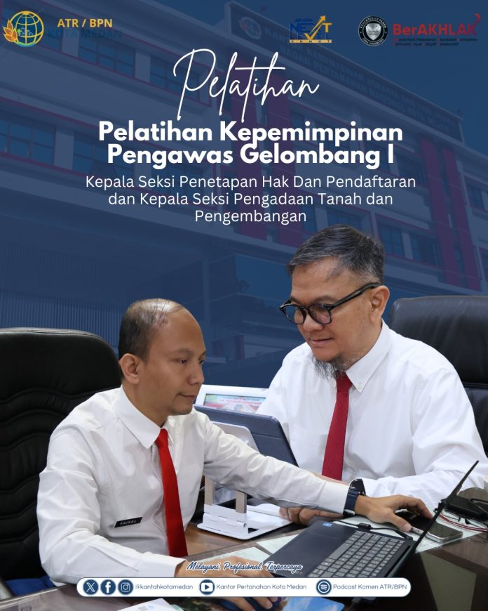 MEDIA24JAM, Medan – Kantor Pertanahan Kota Medan mengikutsertakan sejumlah pejabatnya dalam Pelatihan Kepemimpinan Pengawas (PKP) Gelombang I sebagai upaya meningkatkan kapasitas sumber daya manusia.