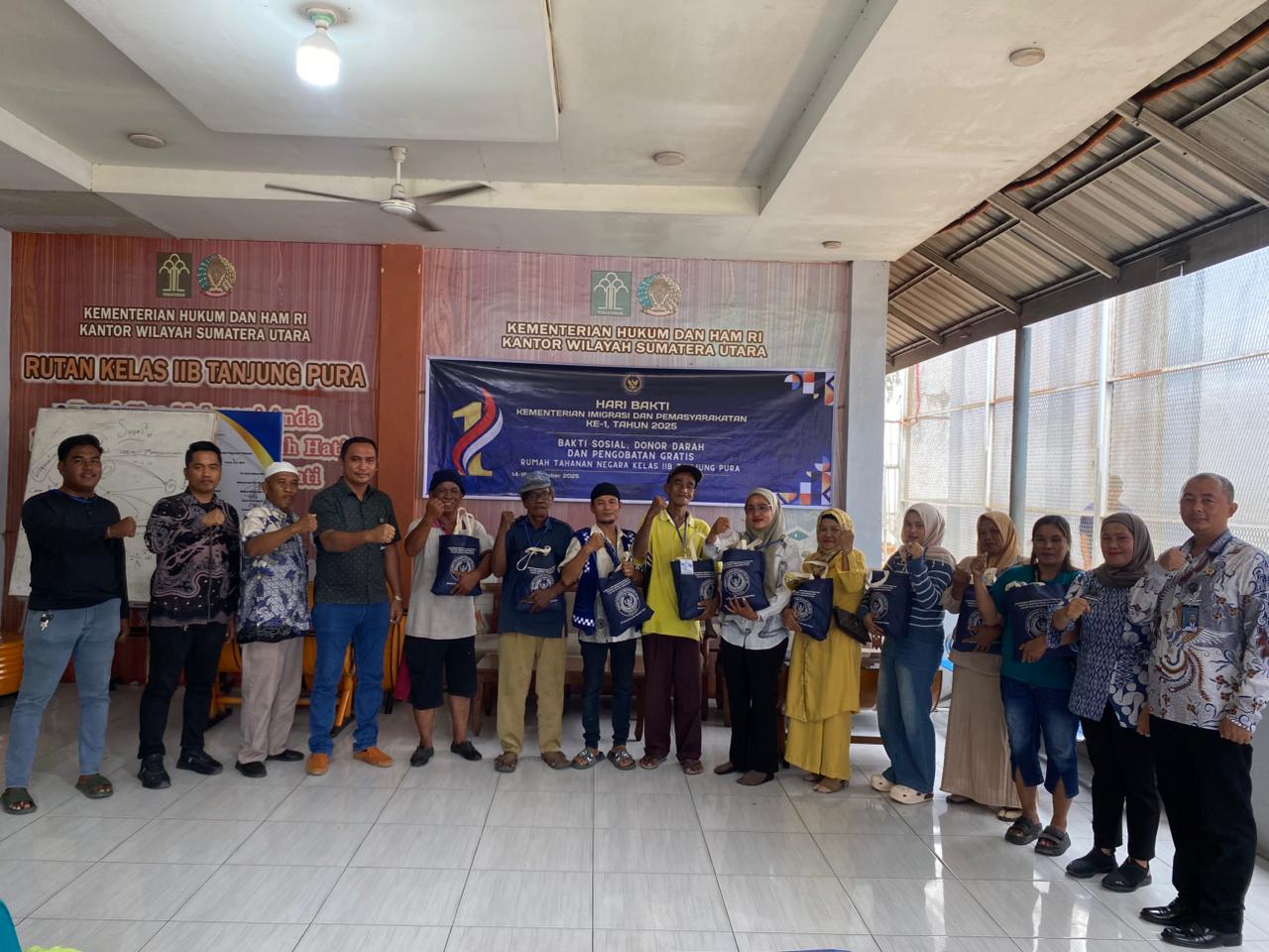 Kegiatan ini dilaksanakan di Pendopo Rutan Tanjung Pura dan dihadiri langsung oleh Karutan Tanjung Pura, Fransisco Pandia beserta pejabat struktural dan pegawai. Kegiatan ini merupakan bagian dari serangkaian kegiatan nasional dalam memperingati Hari Bakti Kementerian Imigrasi dan Pemasyarakatan dengan teman “satu langkah, satu semangat, satu pengabdian untuk bangsa”. Bantuan berupa paket sembako yang diberikan kepada keluarga warga binaan serta masyarakatan sekitar