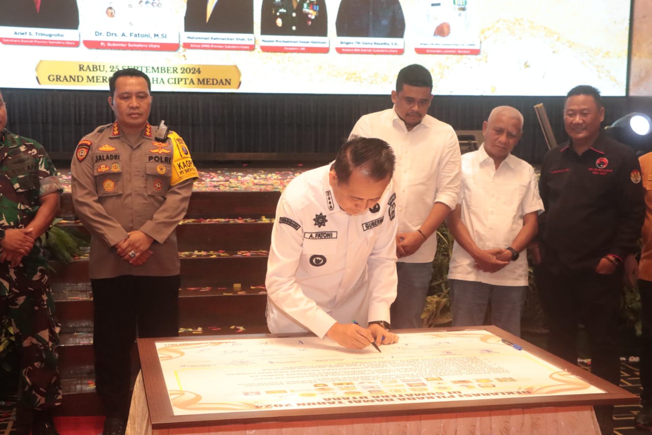 “Sumatera Utara adalah barometer nasional, khususnya dalam penyelenggaraan pesta demokrasi. Dengan kerjasama seluruh pihak, saya optimis Pilkada tahun ini akan berjalan sukses seperti PON yang baru saja kita selesaikan,” ujar Fatoni.