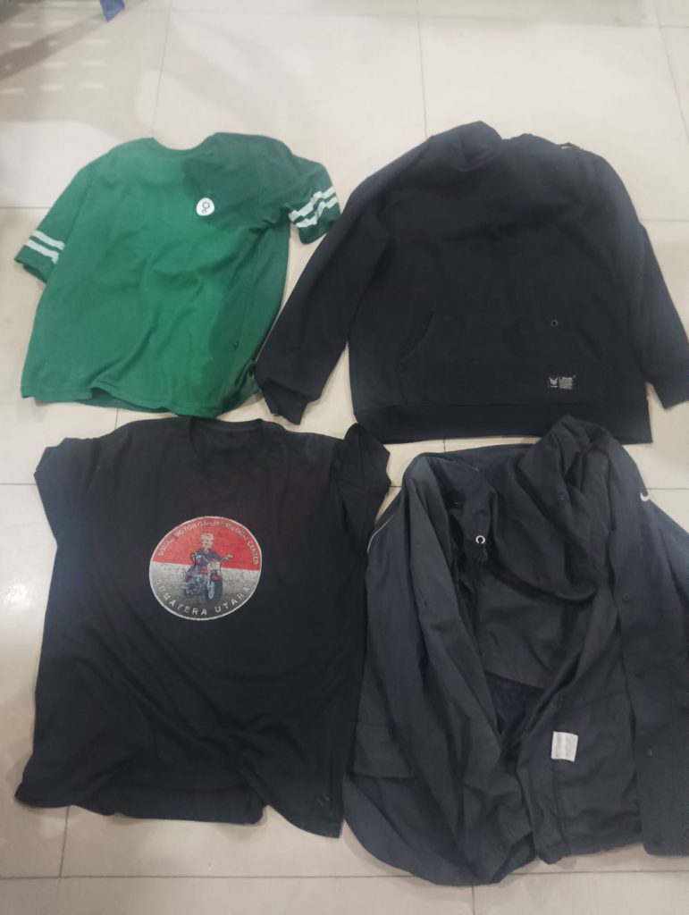 Selanjutnya team Reskrim Polsek Medan tempung menuju lokasi dan melakukan olah Tkp dan melakukan pulbaket, lalu di terima informasi keberadaan di duga pelaku yang berada di jalan Bersama Kelurahan Bandar Selamat Kecamatan Medan Tembung dan team unit Reskrim Medan tempung dan langsung mengamankan diduga pelaku berikut barang bukti Uang Rp 270.000,1 Buah Jaket Hody Warna Hitam Milik Reno pada saat melakukan,1 Buah Jaket warna abu-abu milik Chairil Ardiansyah Als Rian, 1 Buah Baju kaos warna hijau Milik Indra Syahputra dan 1 Buah Baju kaos warna hitam Milik Fahmi Reza.