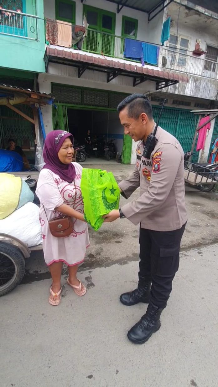 Medan – Media24Jam.com | Polsek Medan Timur kembali melakukan kegiatan sosial Jumat Barokah dengan menggulirkan sembako kepada warga kurang mampu di Jalan Pasar Sambu – Jalan Bawean – Jalan Rupat Medan, Jumat 04 April 2025.