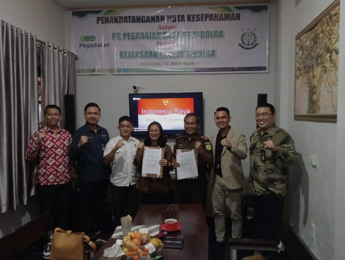 Sibolga, Media 24 Jam – Mendapat amanah untuk melayani penyaluran pembiayaan berbasis Fidusia, PT Pegadaian Cabang Sibolga melakukan penandatanganan perjanjian kerjasama atau Memorandum of Understanding (MoU) di bidang hukum perdata dan tata usaha dengan Kejaksaan Negeri Sibolga, Selasa (11/6/2024), di Deal Kafe Sibolga.