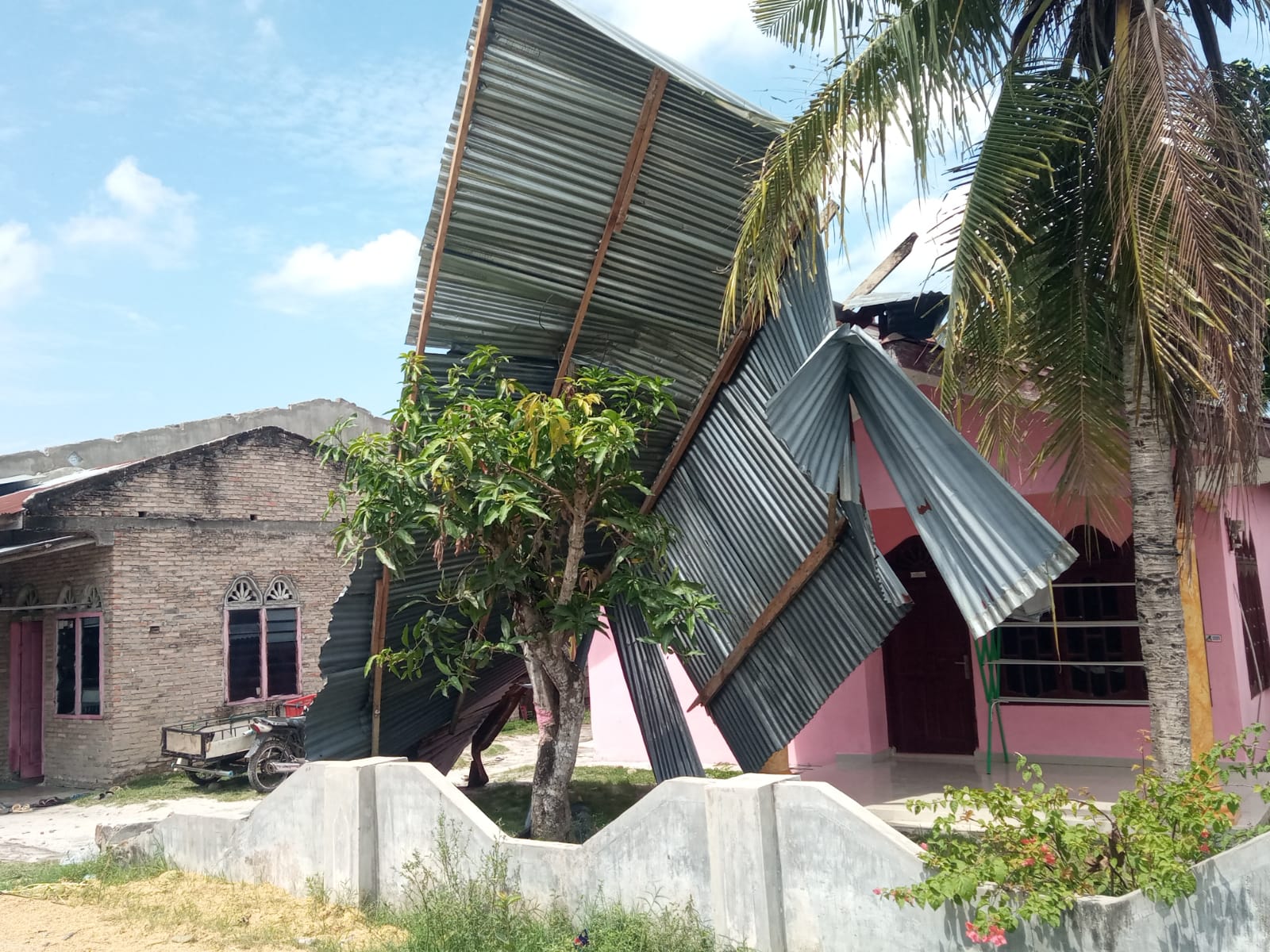 Ditempat terpisah tepatnya di Dusun IV Desa Pematang Pelintahan, terlihat juga dua rumah mengalami kerusakan berat, yang dimana hampir seluruh atap seng kedua bangunan rumah di terjang angin puting beliung.