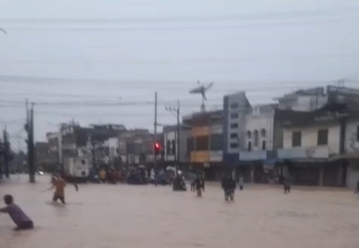 Banjir dilaporkan merendam rumah-rumah warga dengan ketinggian mencapai selutut orang dewasa, bahkan di beberapa tempat tampak cukup tinggi.