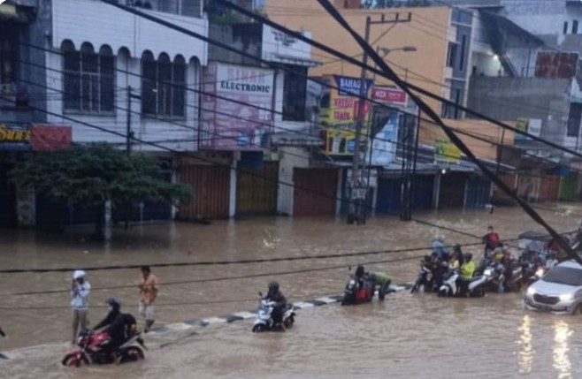 Medan – Banjir kembali melanda sejumlah wilayah di Kota Medan, antara lain di kawasan Amplas, Medan Johor, Maimun, Pinang Baris, Medan Helvetia, Tanjung Gusta dan beberapa kawasan lainnya, sejak Selasa malam (26/11/2024) hingga Rabu pagi ini (27/11/2024).