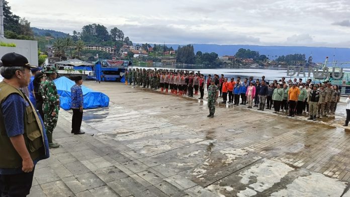 SIMALUNGUN | MEDIA 24 JAM.COM- Polres Simalungun bersama jajaran TNI, Pemerintah Kabupaten Simalungun, dan masyarakat melaksanakan apel kesiapan penanggulangan bencana banjir di Pantai Bebas, Kelurahan Parapat, Kecamatan Girsang Sipangan Bolon, Senin (17/3).