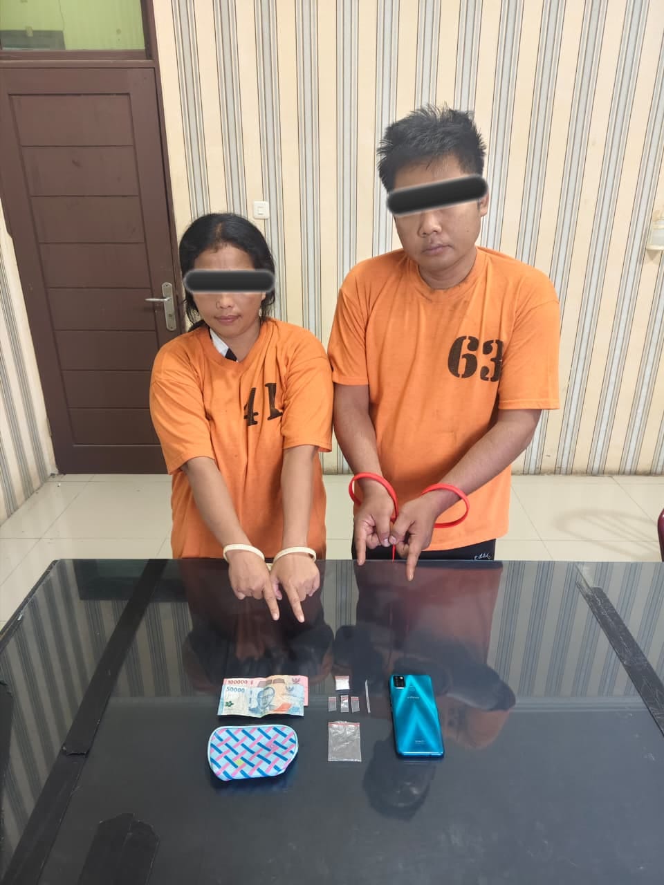 Lanjutnya lagi,dari tangan kedua tersangka, polisi menyita sejumlah barang bukti, di antaranya satu paket sabu dengan berat netto 0,92 gram, empat plastik klip kosong, satu pipet yang digunakan sebagai skop, satu dompet berwarna biru, satu unit handphone Android, serta uang tunai sebesar Rp150.000.