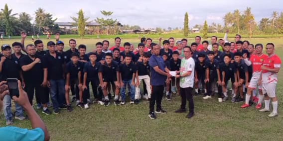 Di akhir kegiatan, Darmawan Manager DAMBAAN FC secara simbolis menyerahkan santunan dari Wakil Bupati Adlin Tambunan kepada manajer Sejati Jaya sebagai bentuk dukungan langsung dari pemerintah daerah.(hrp)
